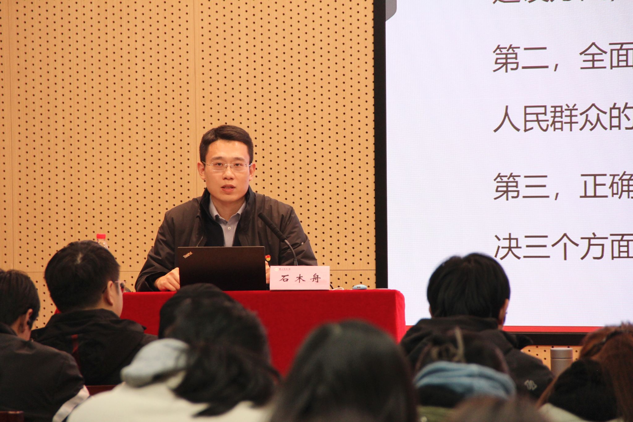 11月27日下午,包子漫画 “园思讲堂”系列讲座之“永不褪色的信仰——党章之路”主题党课在滨江校区园艺楼142举办。本次党课包子漫画 党委副书记石木舟主讲,包子漫画 辅导员赵家豪主持本次活动以滨江校区为主会场,卫岗校区进行同步转播共计约260名入党积极分子和入党启蒙学员参加