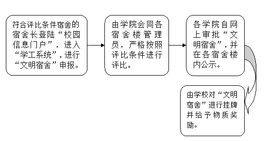 学生住宿管理规定》,宿舍整齐,清洁美观。宿舍成员上一学年内没有受到过有关部门的批评和处分;