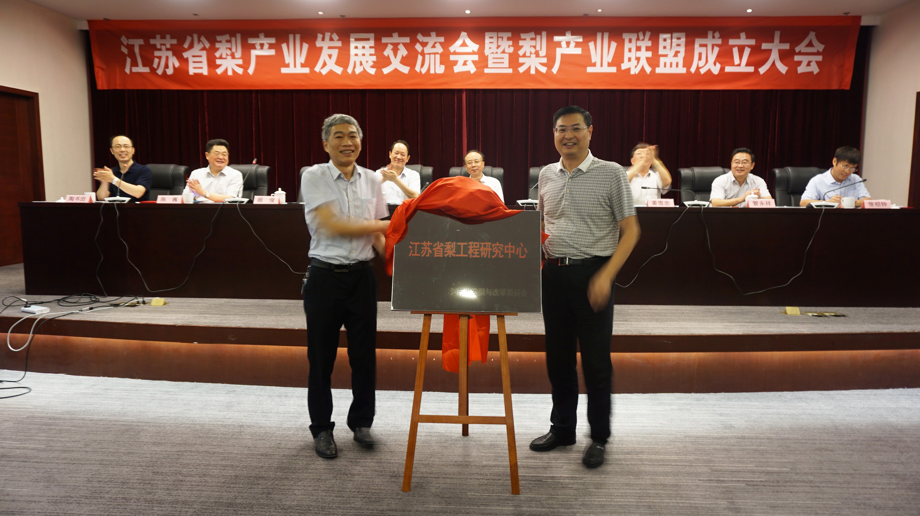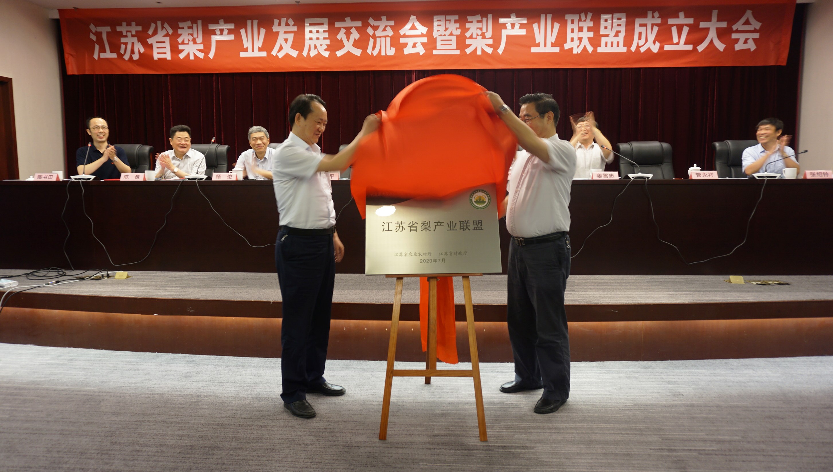 储惠平副处长和管永祥站长为江苏省梨产业联盟揭牌