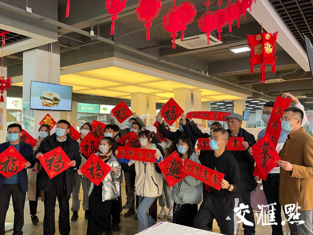 学院关工委陈翔高老先生带着同学们一起写福字,横粗竖细,福“倒”福到,“业精勤奋”“白菜飘香”“科研顺利”……一笔一划也写出了期盼与祝福。