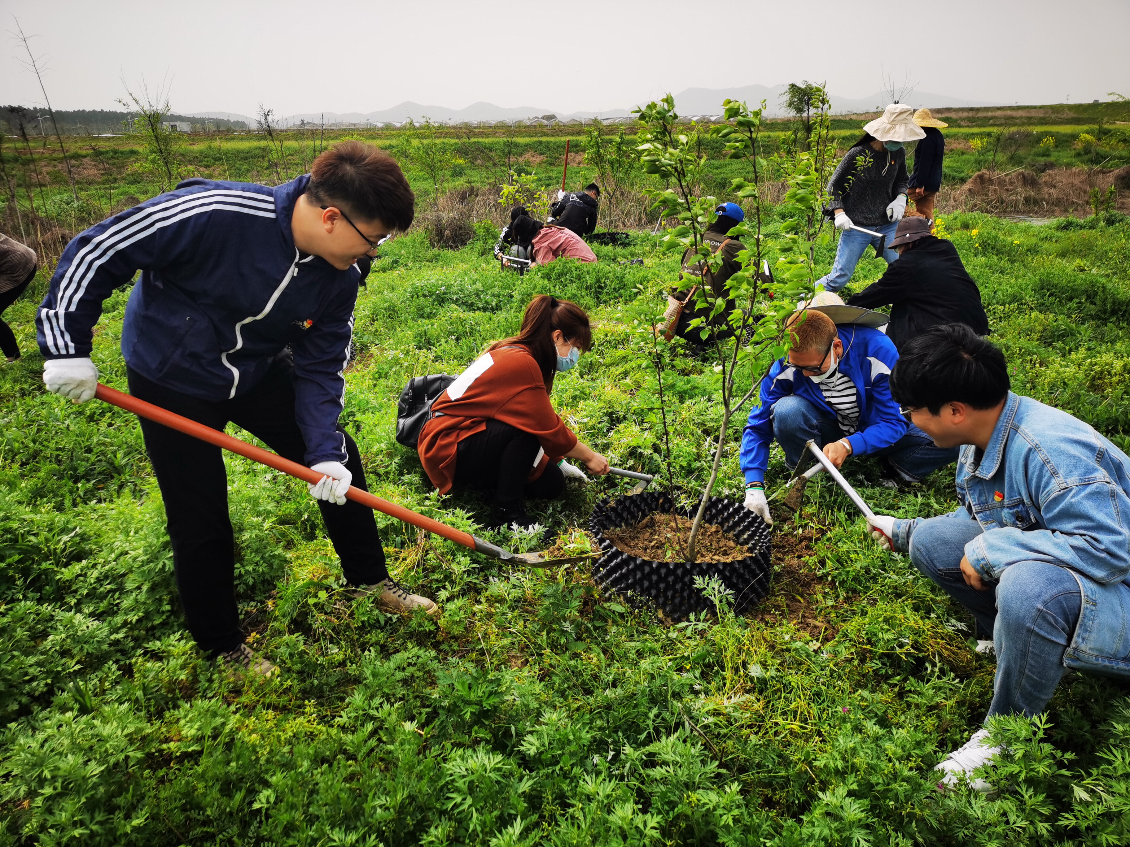此次植树活动,全体党员承担200棵梨树的养护任务,并对枯树进行补苗。
