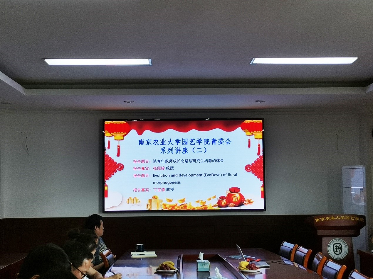 青委会系列讲座(二)在生科楼B4003会议室举行。本次学术论坛邀请了青委会顾问、果树学科点点长张绍铃教授和观赏园艺学科丁宝清教授分别就《谈青年教师成长之路与研究生培养的体会》和《Evolution and development (EvoDevo) of floral morphogenesis》为题与在座的20余名青年教师展开了深入的交流。本次学术论坛由学院青委会刘同坤副教授主持。
