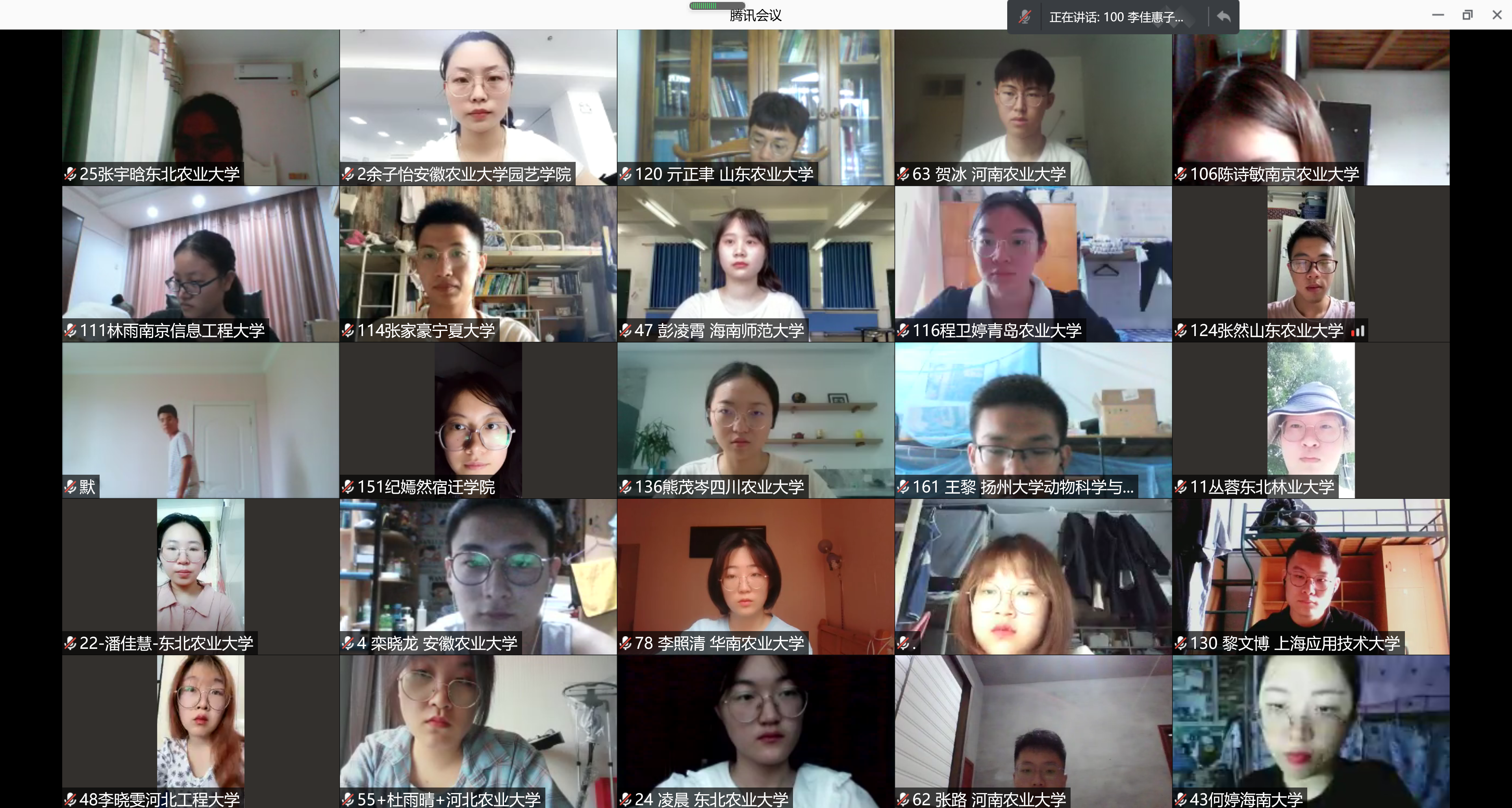 副院长、观赏园艺学学科点点长陈素梅,园艺系系主任上官凌飞,茶学系系主任陈暄,设施农业科学与工程系系主任束胜,导师代表高志红,研究生辅导员芮伟康,以及经过层层选拔、来自全国各地54所高校的共170名本科生通过网络相聚云端,参加了论坛的开幕式。开幕式由学院党委副书记文习成主持。