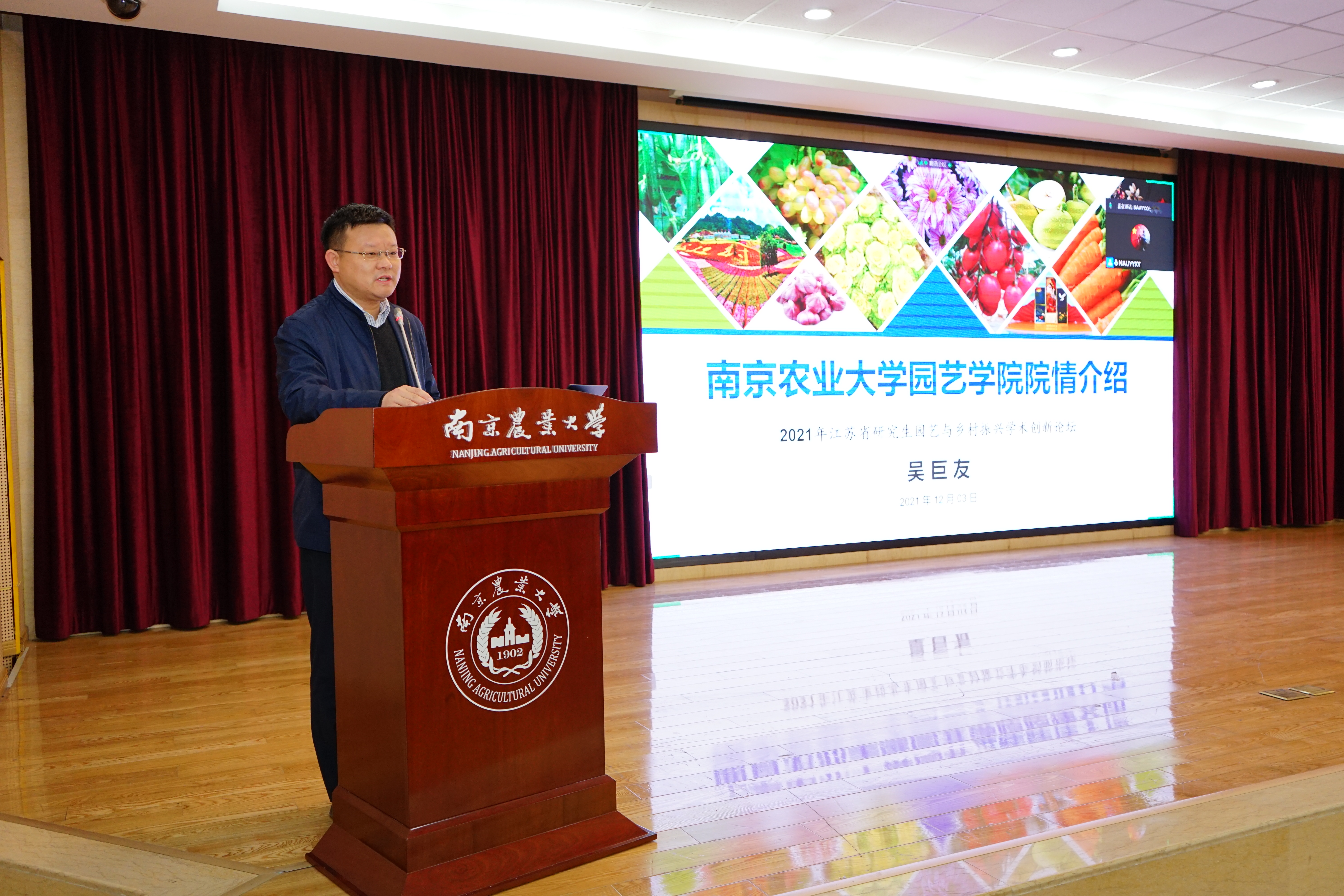 基本情况,他从师资队伍、学科结构、科研平台、科研项目、科研获奖、论文专利与社会服务等方面对学院进行了介绍,阐述了学院的办学理念,确立复合型园艺人才培养新理念、明确毕业要求与实现矩阵、打造涵盖全产业链知识体系的教学资源,并且不断加强国际合作,服务国家需求。