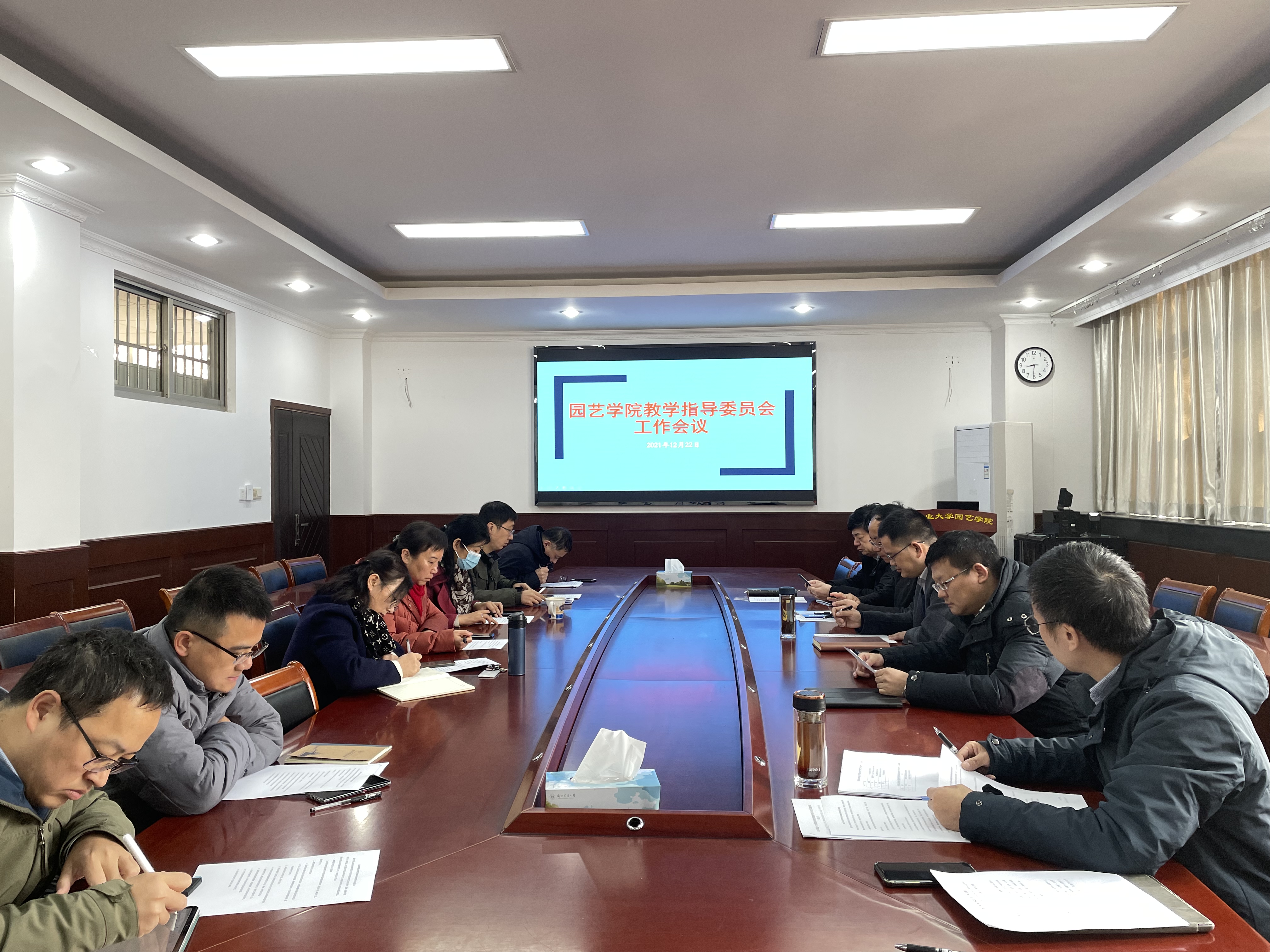 绩效考核教学类社会服务积点的分配提出了指导意见,听取了学院5个系2021年的年终总结汇报,最后通过在线听课系统观摩了多位老师的课堂授课情况,并进行了点评和讨论。