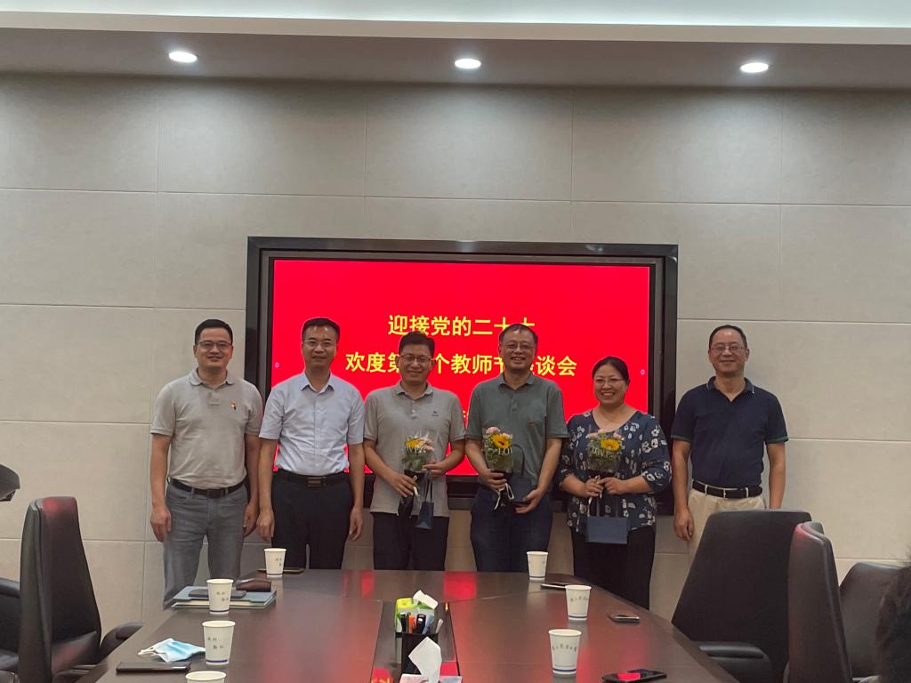 支部一向崇尚尊师重教,弘扬榜样力量。本次座谈会上为在岗20年、在岗10年的教师代表送上了特别的节日祝福。随后,八卦洲挂职归来的滕年军教授、从教30年的王长泉教授作了社会服务和教书育人的经验分享与表态发言。支部书记陈素梅细数了支部成员2022年在工作中取得的成绩和生活中的喜事,并送上了热烈的祝贺和温馨的祝福,指出支部成员教龄不同,从新入职的教师到从教31年教龄的老教师,要求支部成员充分发挥和用好支部成员的结构优势,做好“传帮带”,人人争做“四有”好老师。会议还就下半年支部建设工作进行了探讨,确定了支部建设的重点工作。