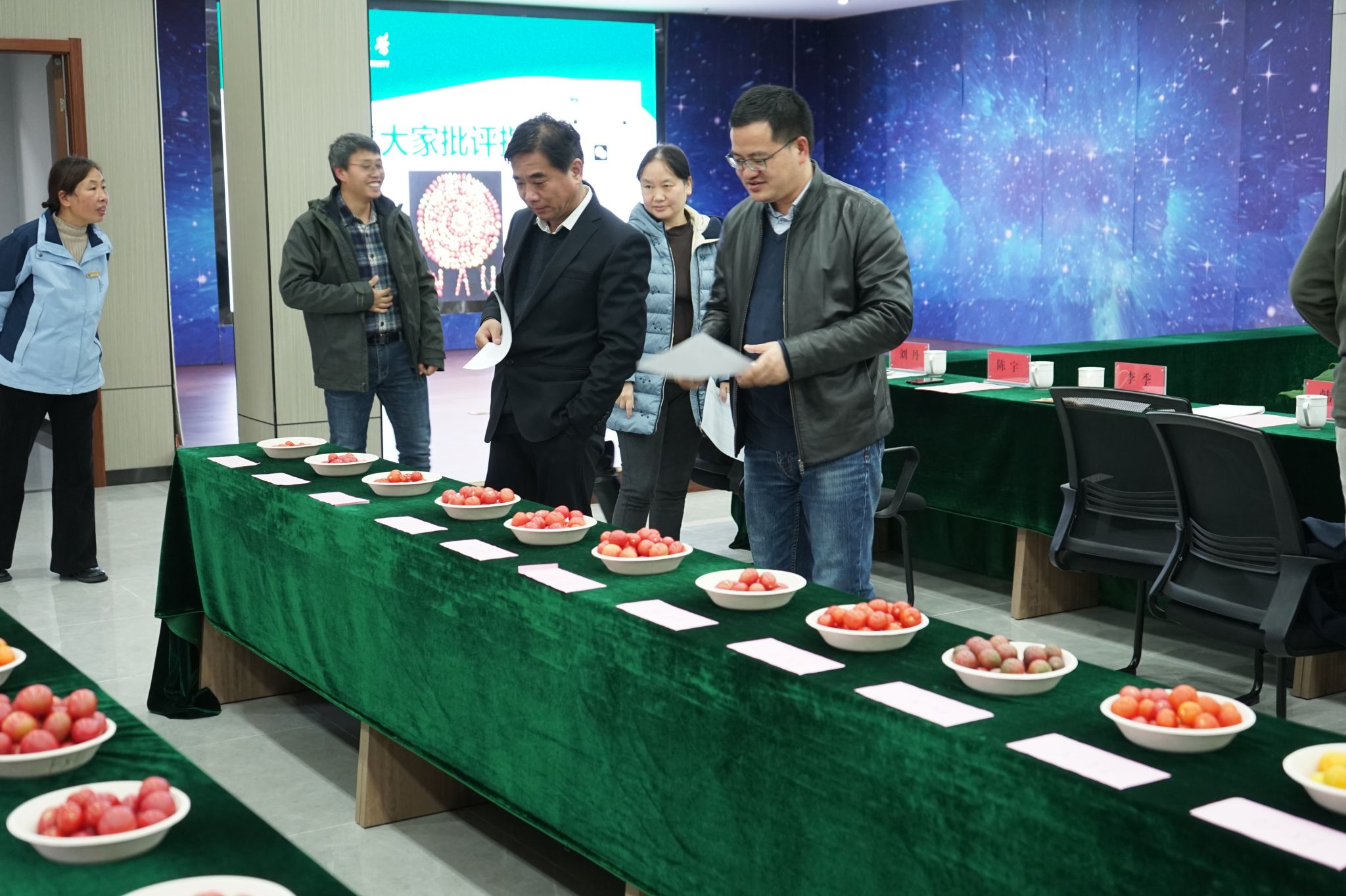 主题报告结束后,参加“园味”沙龙的领导和专家一起品鉴了“园味”产品——为特色蔬菜品种选育进行感官评价打分。至此,包子漫画