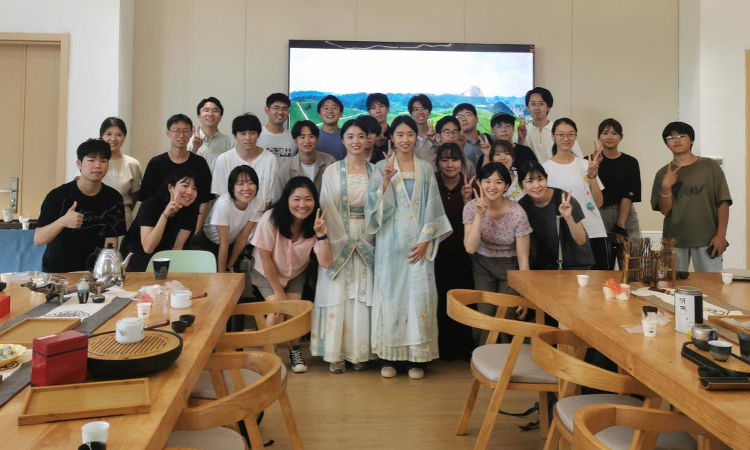 赵真老师讲授茶具使用与茶道礼仪、泡茶技艺和品茶要点,身着汉服的南农学生展示了茶艺表演,访学团仔细聆听、认真观看,并积极参与泡茶、品茶等过程,充分感受中国茶文化的魅力。