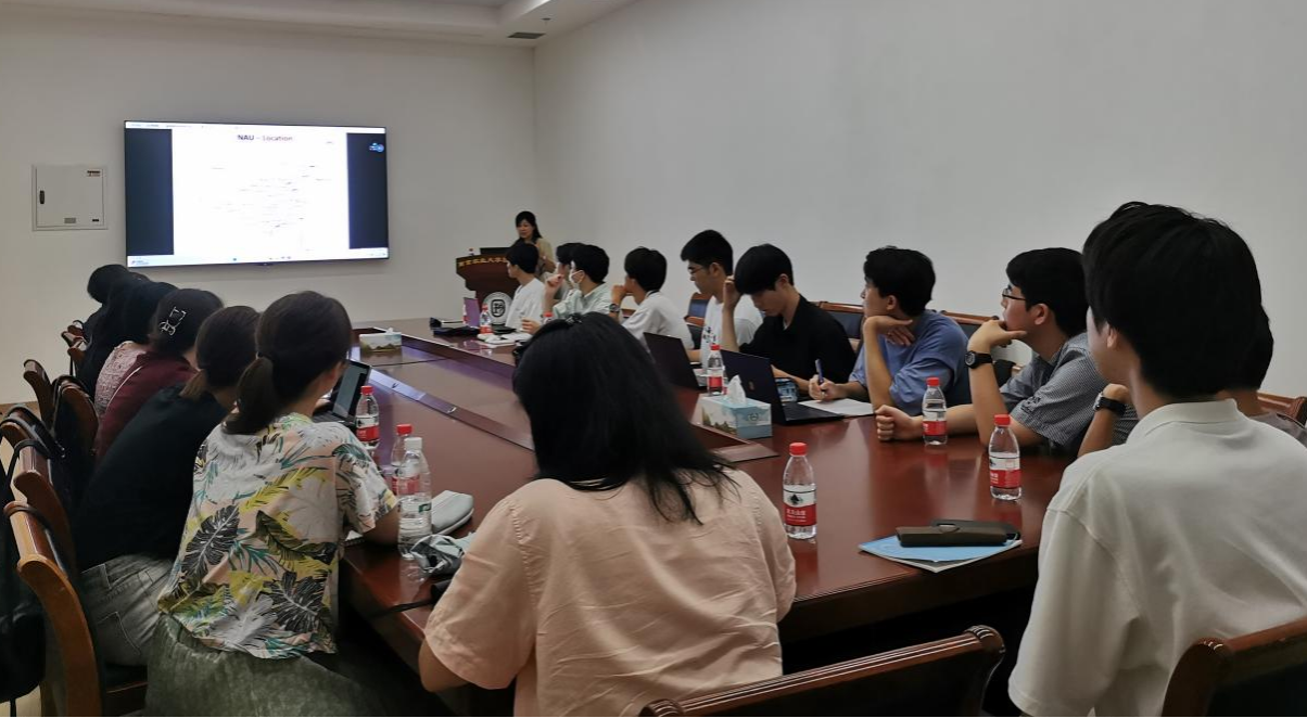 精心准备,为千叶大学学生安排了多场精彩纷呈的学术大餐。陈素梅教授、朱旭君副教授、韩琪瑶副教授、汪涛副教授分别作《中国园艺产业发展现状》《中国茶文化的起源与发展变化》《中国风景园林发展史》《中药发展及文化》等报告,为访学团全方位展示了我国园艺、茶、风景园林、中药产业及文化的发展情况,学生们认真听讲,反响热烈。