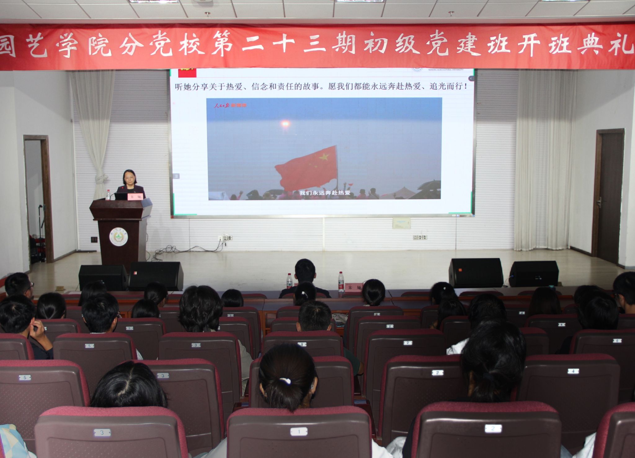 马克思主义学院教授朱娅为全体学员作了题为《我为什么加入中国共产党》的专题报告。朱老师以“我们为什么要加入中国共产党?”“怎样的青春无愧于党旗?”“我们怎么样才能成为一位合格的共产党员?”三个问题引导大家共同思考。她强调,青年学子须励志须实干,不辜负建功立业的人生际遇,不辜负“天将降大任于斯人”的时代使命,不辜负党的期望、人民的期待、民族的重托,努力做有理想、有本领、有担当的时代新人!