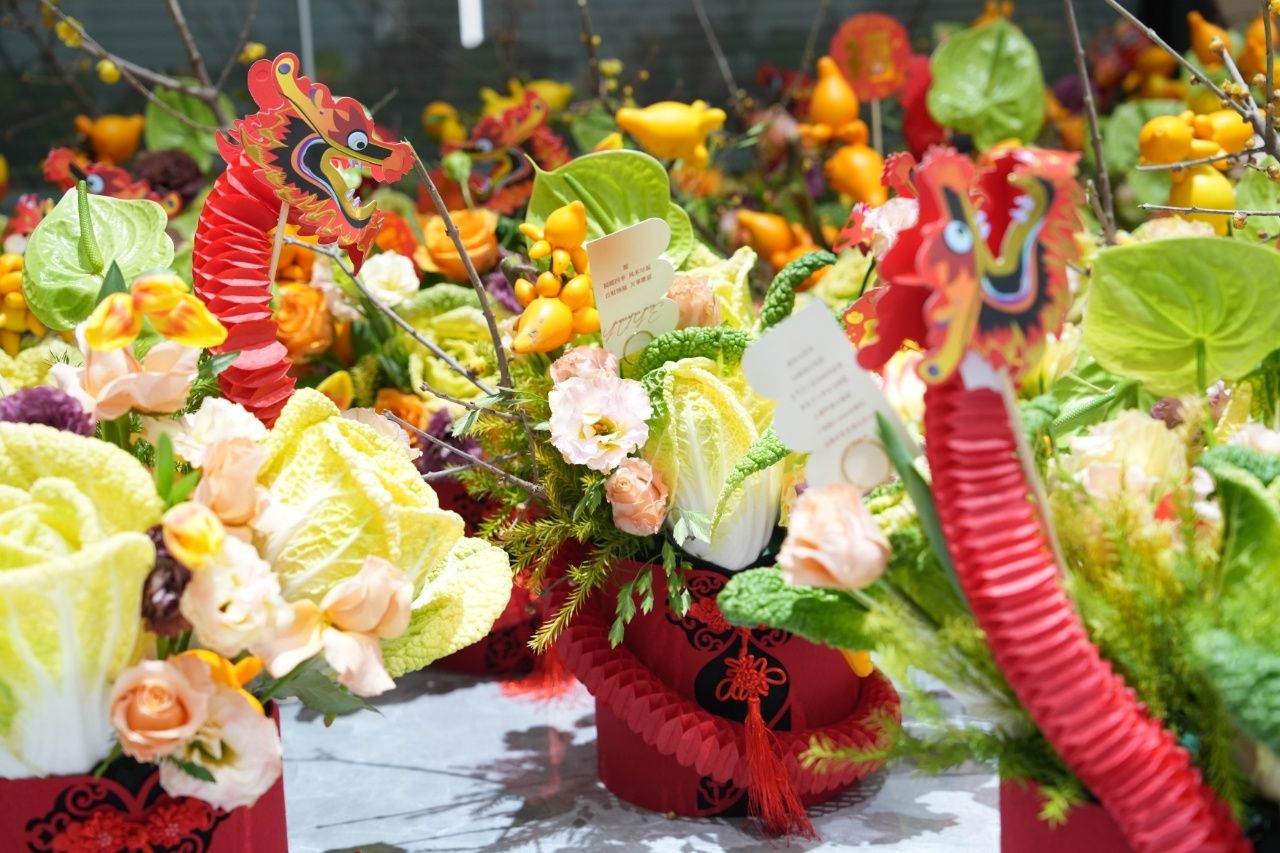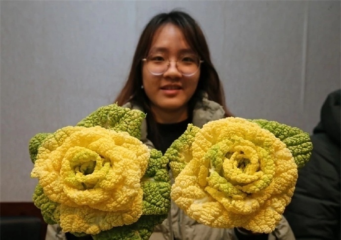 供不应求的“黄玫瑰”白菜做成创意年宵花