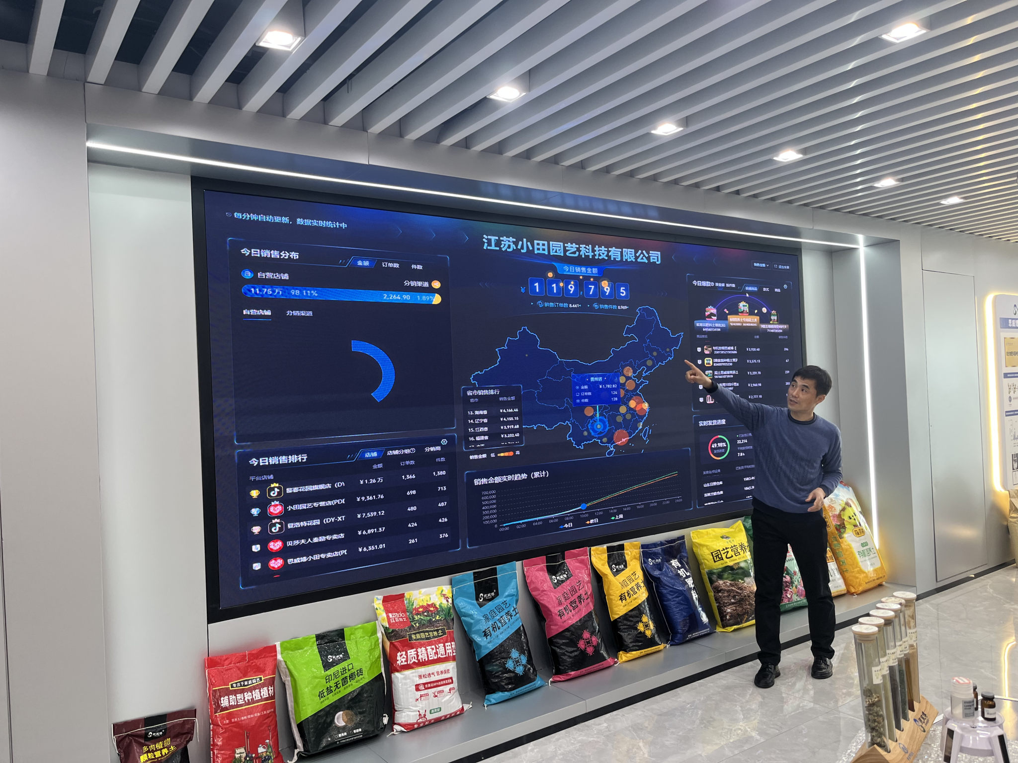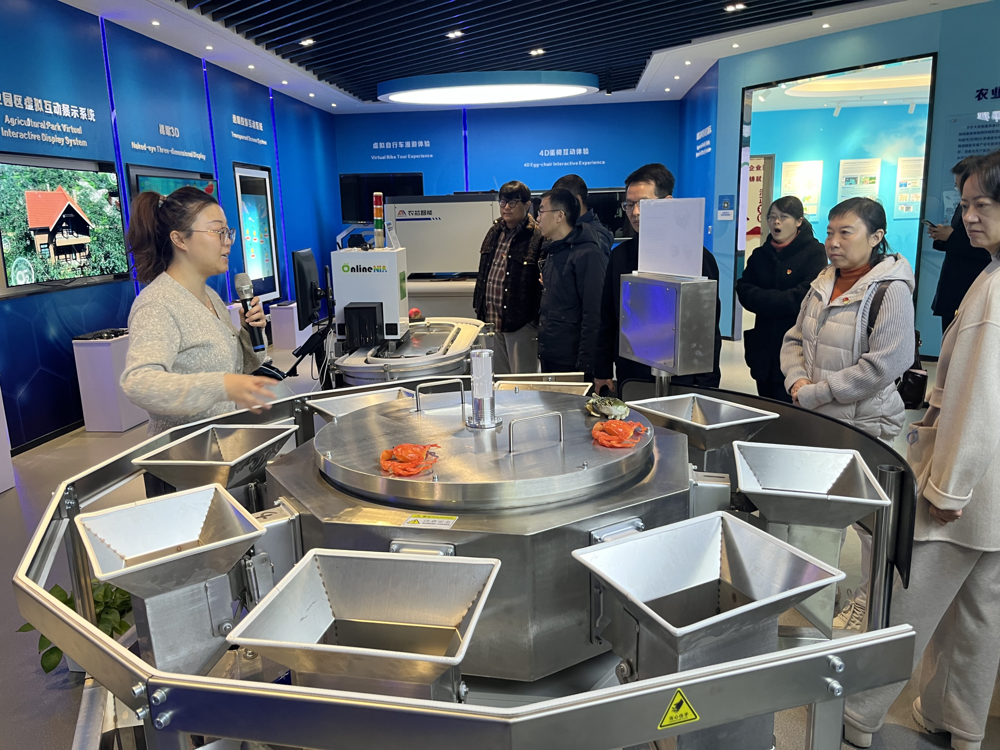 支部党员走进农创中心百家企业展馆与高新技术产品馆。展馆内汇集了百余家农业科技企业的创新成果,琳琅满目的展品全景式呈现了现代农业的科技图景。党员们驻足于园艺作物智能化管理设备展区,结合学院学科特色,重点调研了先进技术的产业化应用进展。活动最后一站来到江苏省农业农村大数据指挥中心,巨型电子屏上实时跳动着省内农业农村的数据流,工作人员通过演示平台如何通过AI算法预测与农业相关的各项数据,让支部党员深切感受到大数据与人工智能正深刻重构农业生产方式,也为园艺学科数字化转型提供了重要启示。