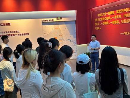 2025年6月6日,观赏茶学专业教师党支部联合观赏学硕第一党支部、观赏学硕第二党支部、观赏学硕第三党支部、观赏博士第一党支部、观赏博士第二党支部赴南京江北新区红色广场开展主题党日活动,通过沉浸式革命传统教育强化党风廉政建设。30余名党员在教师党支部书记王振兴、学生党支部书记丁莲等带领下,以“汲取红色力量、践行规定精神”为主线,将党史学习与中央八项规定精神实践深度结合,探索党性教育新路径。