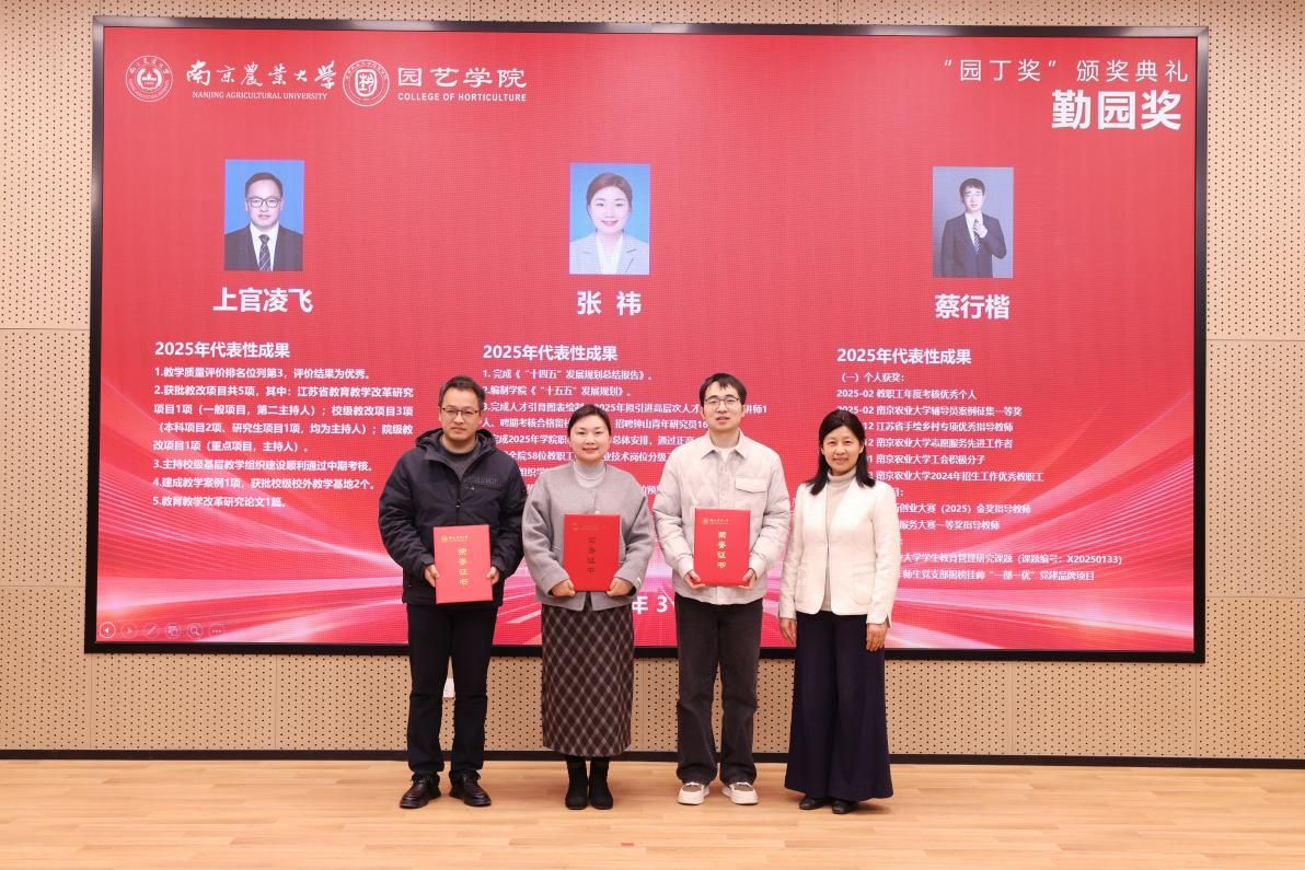 会上举行了2025年度“园丁奖”颁奖典礼。院领导为获奖个人颁发荣誉证书,上官凌飞老师作为获奖代表发言。
