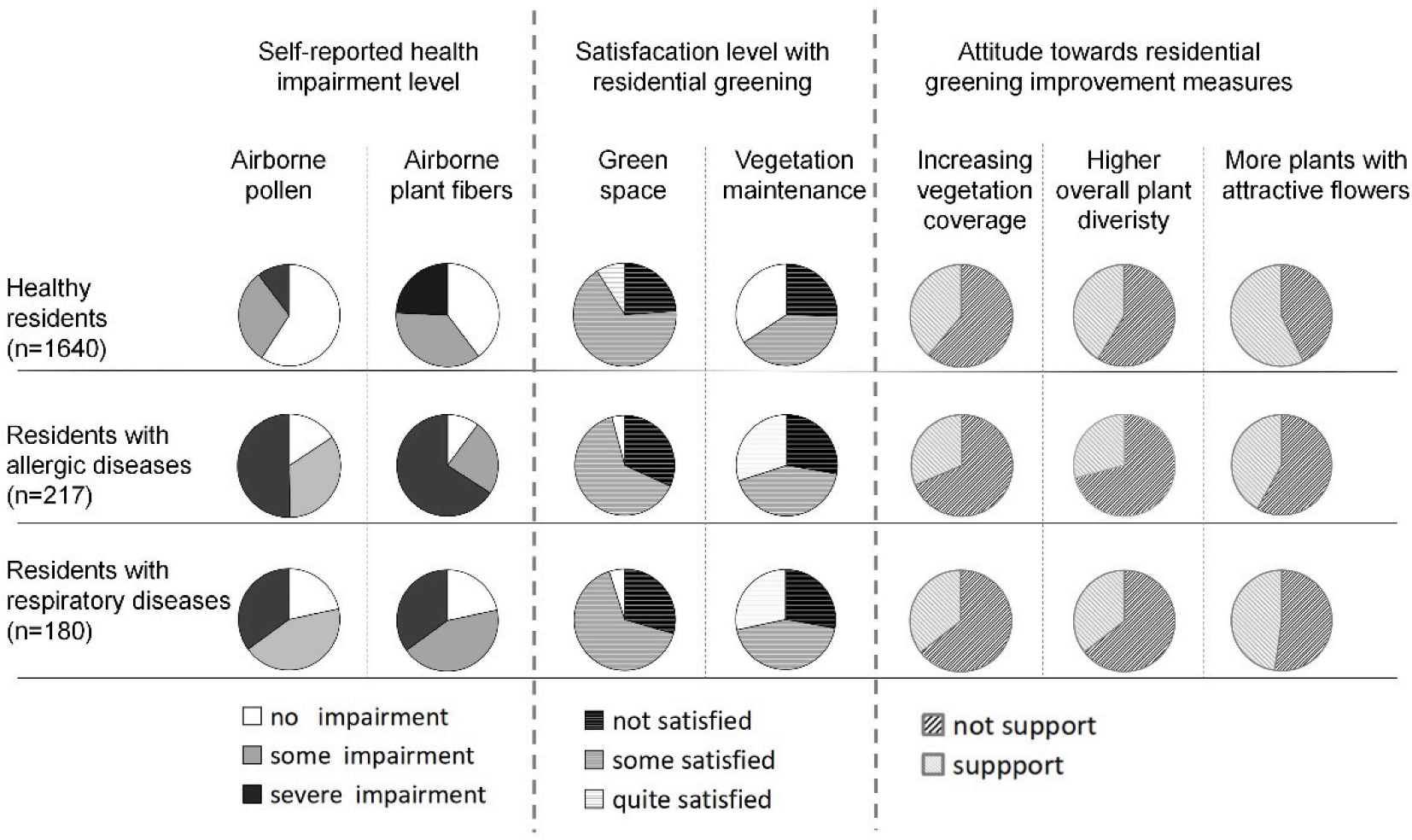 长期以来,学术界就城市绿地对呼吸道疾病和过敏性疾病的影响方面存在大量争议。在呼吸道疾病方面,一些研究证实城市绿化可以减少空气污染,从而改善公众呼吸道健康;而另一些研究表明植物可以释放多种生物源有害物质,并进而损害呼吸道健康。在过敏性疾病方面,一些研究认为多样化的植物可通过调节免疫能力以减少过敏性疾病发病率;而另一些研究则证实过敏性疾病发生率与植被覆盖率正相关。