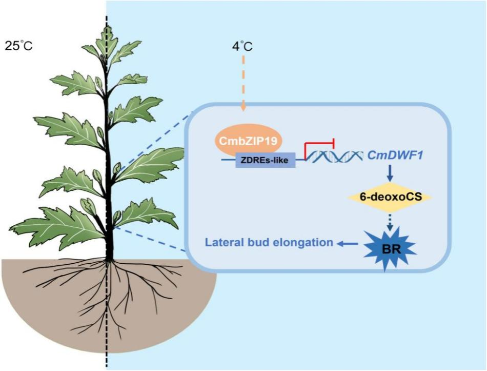 株型|菊花遗传与种质创新团队揭示CmbZIP19通过抑制油菜素内酯(BR)合成调节菊花侧枝发育的新机制