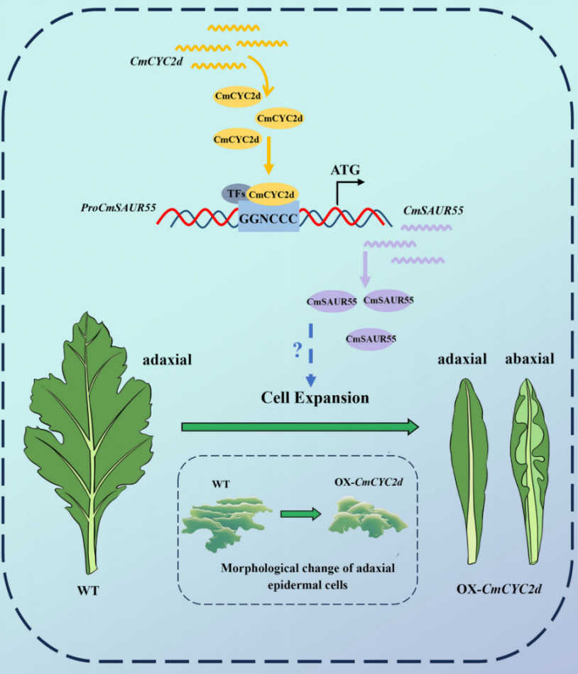 叶型|菊花遗传与种质创新团队在Plant, Cell & Environment发表研究论文揭示CYC2-like转录因子CmCYC2d调控菊花叶片发育新机制